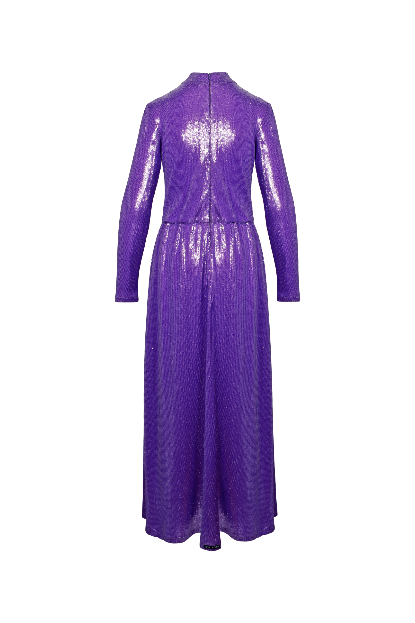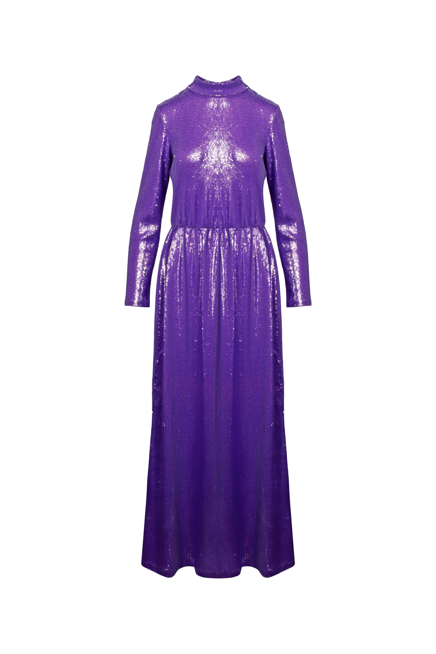 JS ED3 MD001 SWEAT DRESS PURPLE SEQUIN MAXI DRESS WITH LONG SLEEVES AND TURTLENECK COLLAR IN PURPLE SEQUIN 100% POLYESTER SIZE: UNI PRICE: 300 EUR